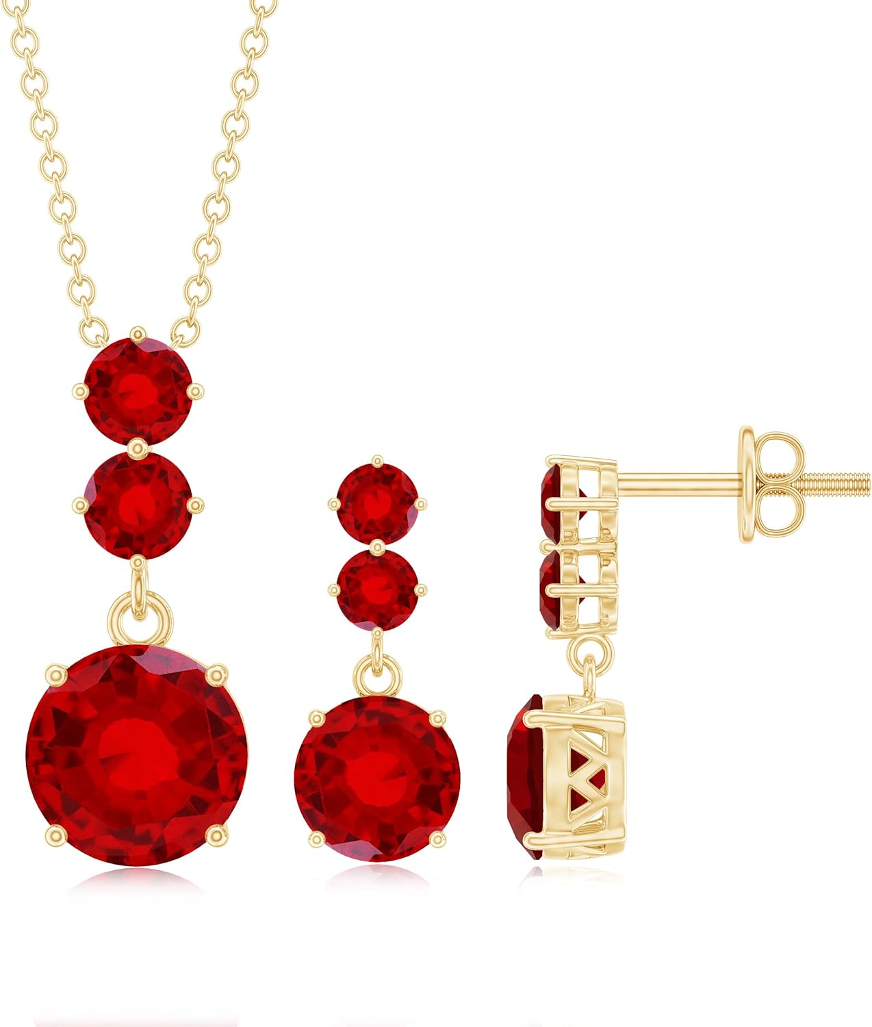 Lab Grown Ruby Necklace and Earring Set, AAAA Quality, Certified Ruby Bridal Jewelry Set for Women (Ready to Gift)