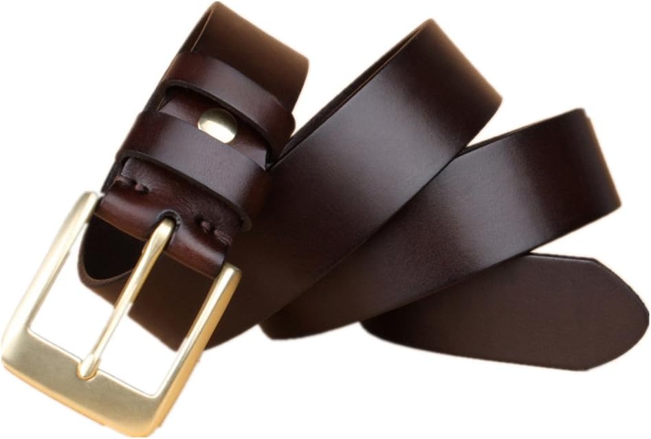Leather Belt Retro Business Casual Mens Leather Belt with Pure Copper Buckle
