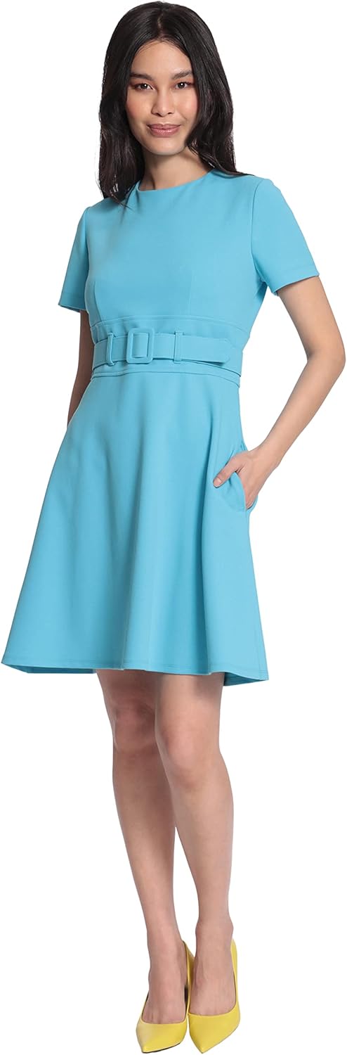 Maggy London Womens Short Sleeve Mini Fit and Flare Dress with Wide Belt