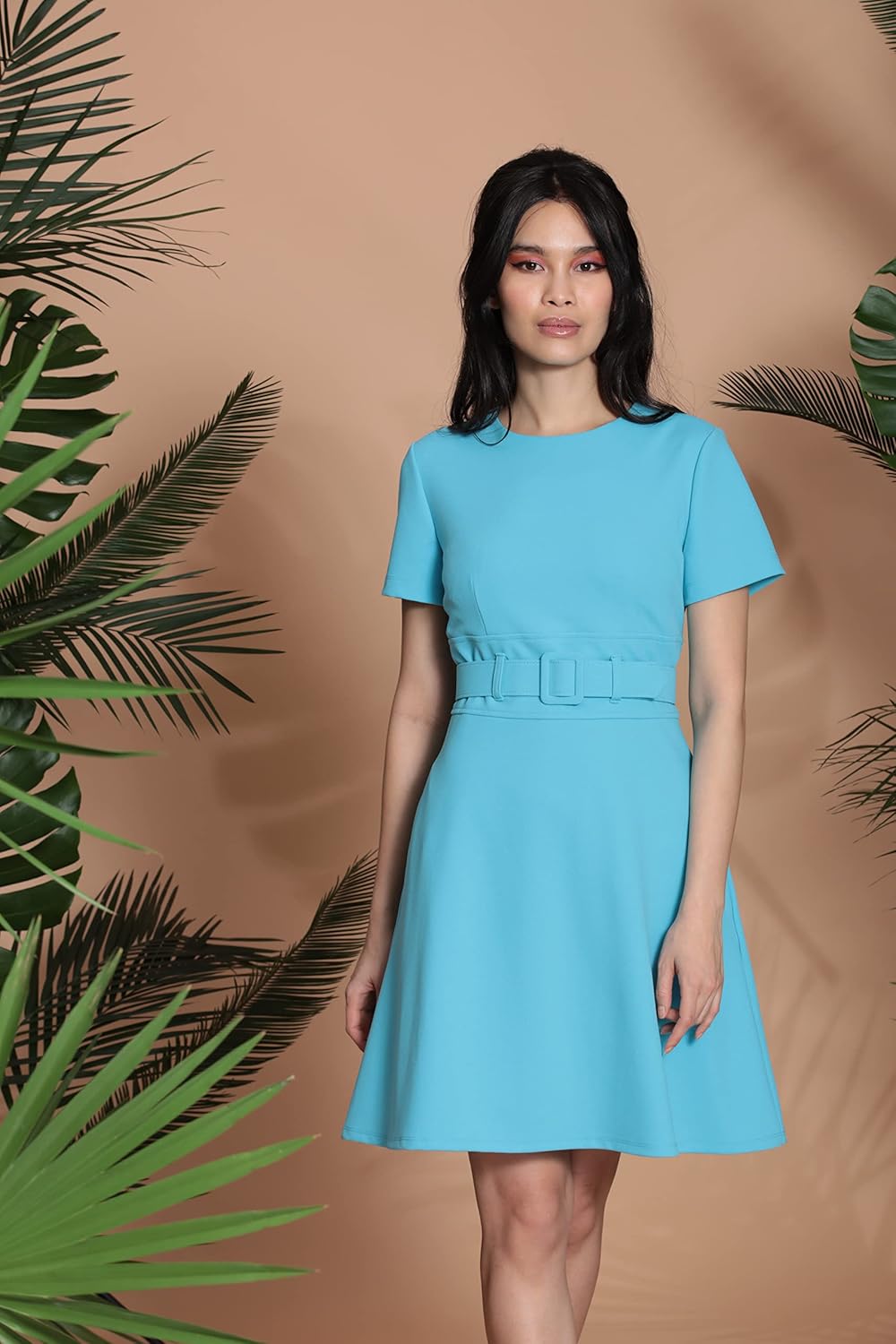 Be the first to review “Maggy London Womens Short Sleeve Mini Fit and Flare Dress with Wide Belt”