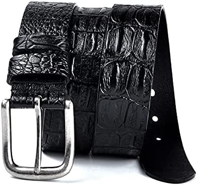 Men’s Belts Men Genuine Leather Ancient Silver Metal Buckle Men’s Belt (Color : Black, Size : 120cm 40to43 Inch)