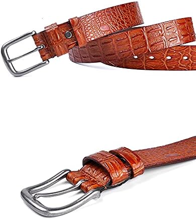 Men’s Belts Men Genuine Leather Ancient Silver Metal Buckle Men’s Belt (Color : Orange, Size : 110cm 36to39 Inch)