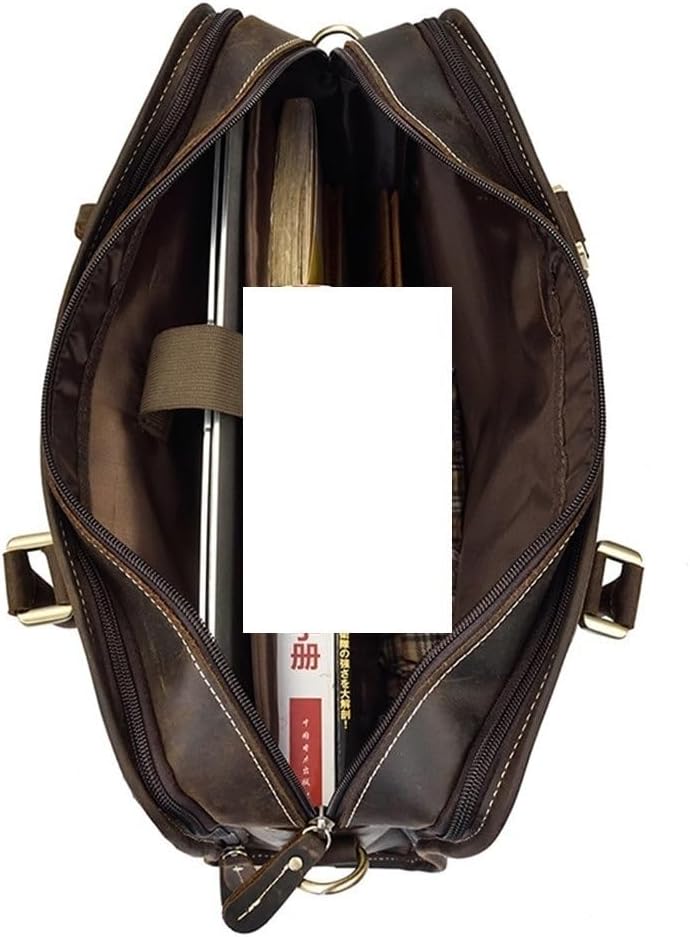 Mens Vintage Business Travel Vacation Laptop Messenger Bag Waterproof Leather Briefcase Slim Profile