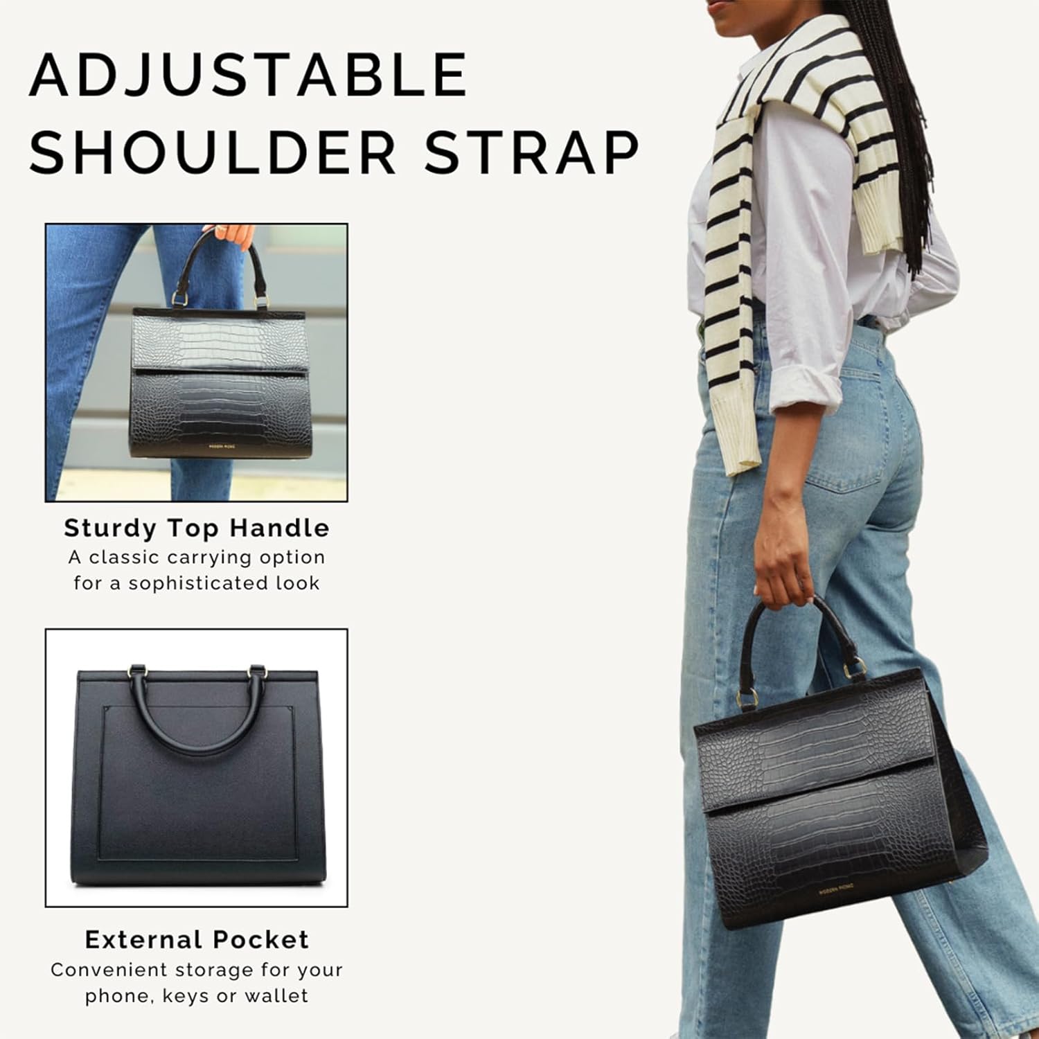 𝐏𝐞𝐫𝐟𝐞𝐜𝐭 𝐆𝐢𝐟𝐭 𝐟𝐨𝐫 𝐅𝐚𝐬𝐡𝐢𝐨𝐧 𝐄𝐧𝐭𝐡𝐮𝐬𝐢𝐚𝐬𝐭𝐬: Modern Picnic’s lunch bag for women has a chic crocodile-textured exterior and elegant packaging, perfect for special occasions. Featured on Shark Tank and highlighted in the media over 400 times, this black lunch bag for woman is a trusted choice for modern women.