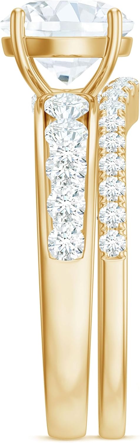 Moissanite Solitaire Ring Set for Women | Moissanite Diamond Engagement Ring with Wedding Band, D-VS1 Quality