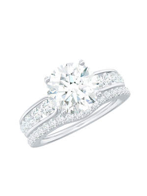 Dreamt of, right? So we caught you! This Moissanite Engagement Ring Set lets you indulge in elegance. Exuding timeless beauty with this Moissanite Ring Set crafted from Vintage Inspired design elevates your bridal style and grace and is perfect for your special day. It is adorned with 8 MM Round Moissanite in Prong Setting with Side Stones. A stunning twist is a curved wedding band that makes the completes look of this Engagement Ring.