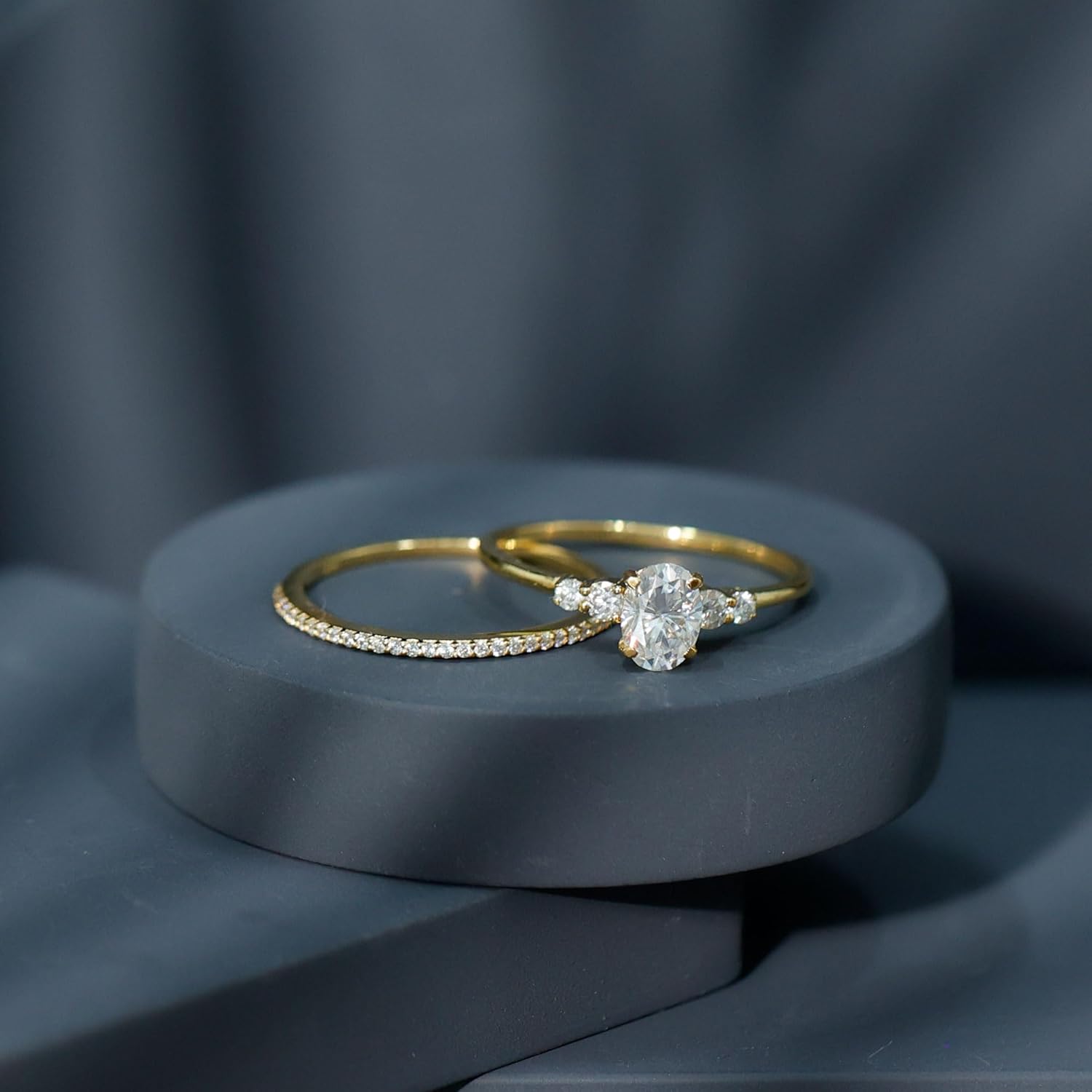Be the first to review “Moissanite Solitaire Ring Set with Stackable Band, 5X7 MM Oval, 1 Carat, Engagement Wedding Ring”