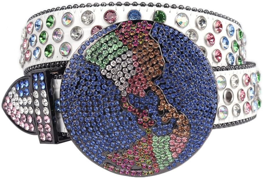 Shop our collection of stylish rhinestone belts for men and women that feature a western cowboy or cowgirl aesthetic with a touch of bling. These studded leather belts are perfect for pairing with jeans or pants and are available in vintage or modern styles with diamond-studded or rhinestone embellishments. We offer a variety of colors and sizes including black, white, and silver. Whether you’re looking for a casual or dressy accessory, our rhinestone belts are a perfect addition to any wardrobe. Choose from goth, punk, or casual puck style crystal diamond waistband rhinestone belts for men and women. Our belts come with diamond pin buckles and metal globe buckles and are great for accessorizing your cowgirl or cowboy look. Don’t miss out on our stylish rhinestone belts!