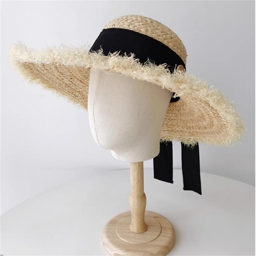 MVUYO Big Brim Hand Hook Lafite Hat Foldable Sun Protection Sun Shading Hat Children’s Beach Vacation Beach Hat