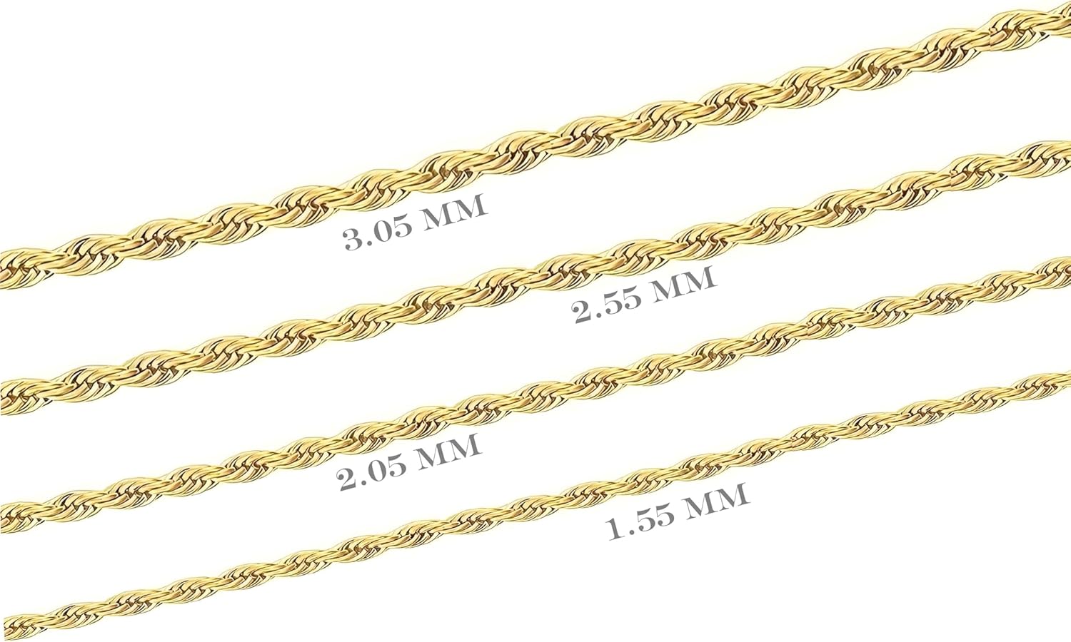 Nareteri 14K Real Yellow Gold Solid Rope Chain Necklace for Women Men Jewelry Gift with Lobster Clasp, 1.55-3.05 mm, 16-30 inch