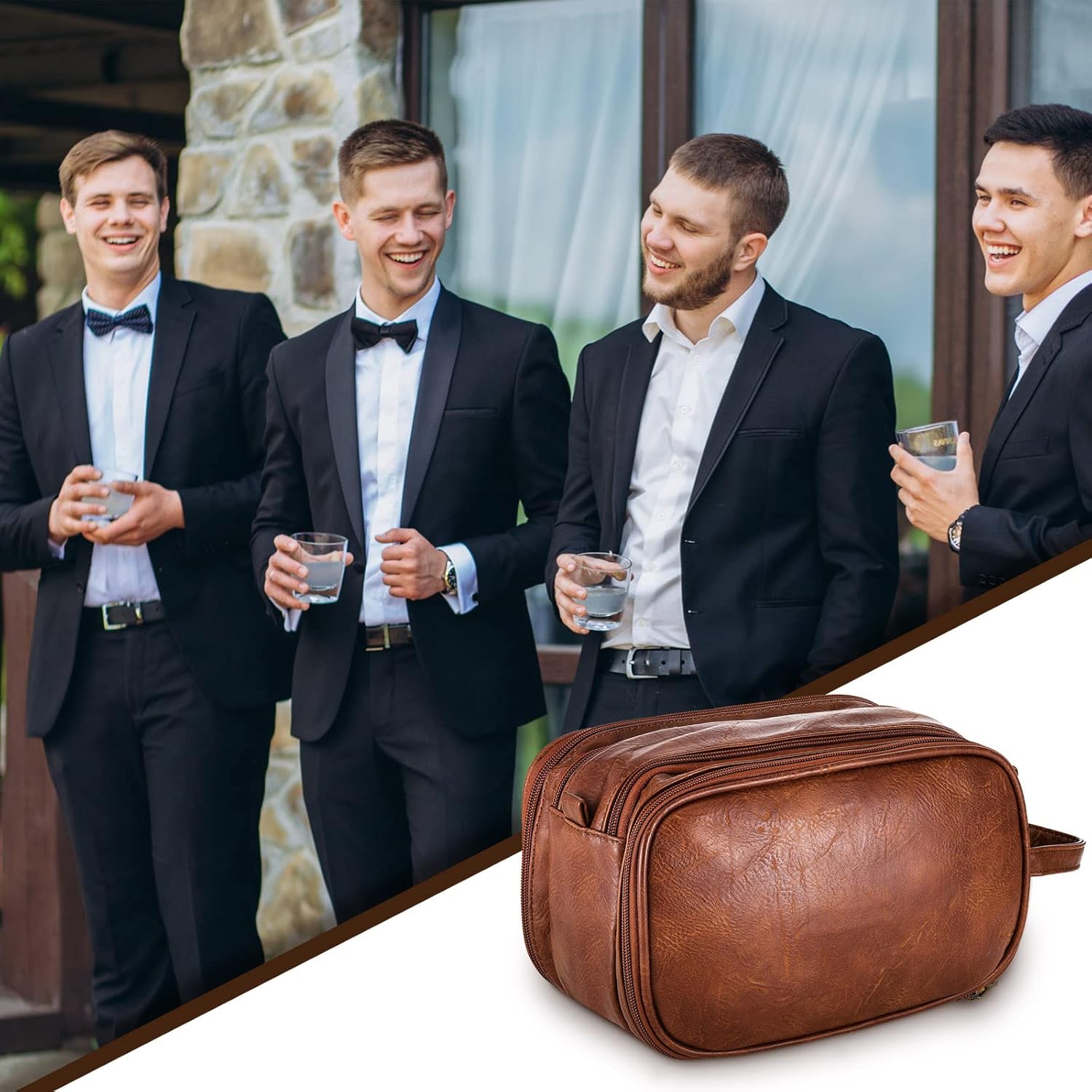Good Gift Choice: the men’s wedding travel shower bag is designed with the theme of wedding, decorated with brown leather tag and printed with the words [Best Man]; The groomsmen who receive the gift will feel pleasantly surprised and happy, and this cosmetic bag also convey happy wishes to your groomsmen