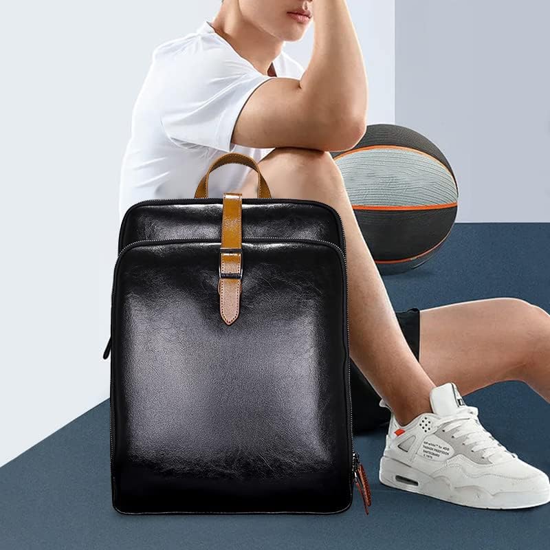 OEIPSMK Men’S Business Leather Backpack Leisure Laptop Backpack Backpack Cowhide Men’S Travel Backpack (black)