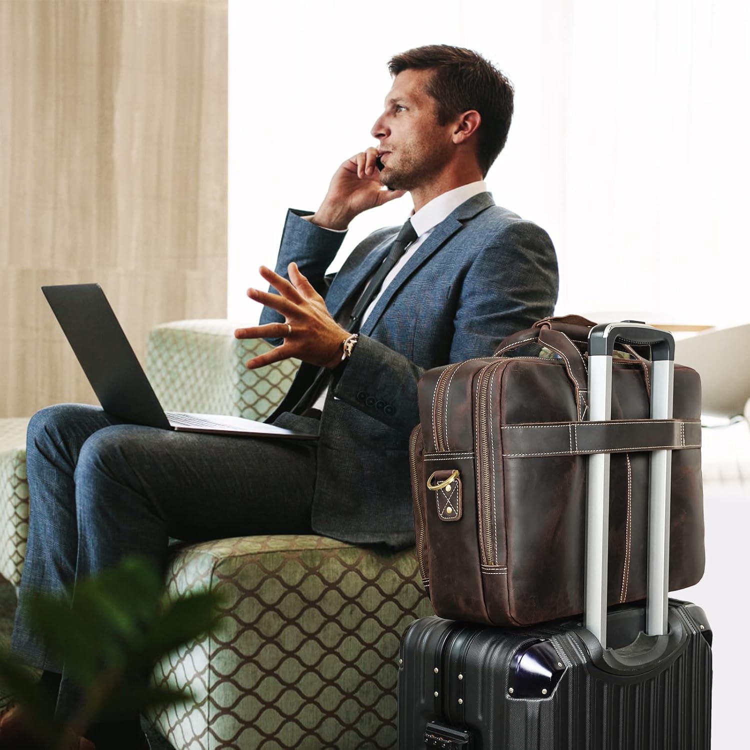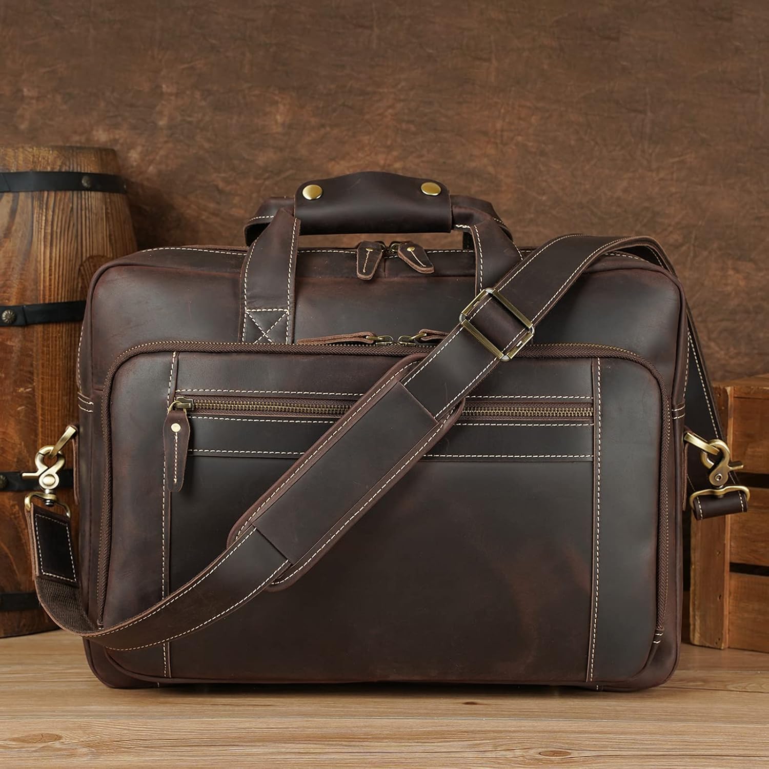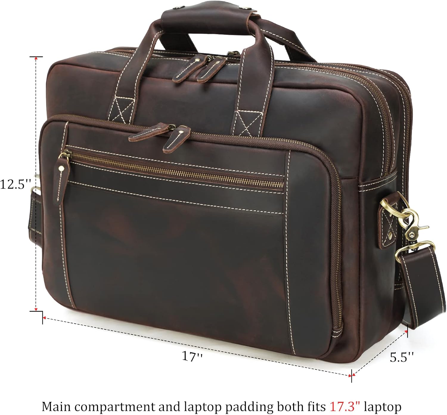 Polare 17″ Full Grain Leather Laptop Briefcase Business Travel Laptop Carrying Case Shoulder Bag For Men Fits 17.3” Laptop
