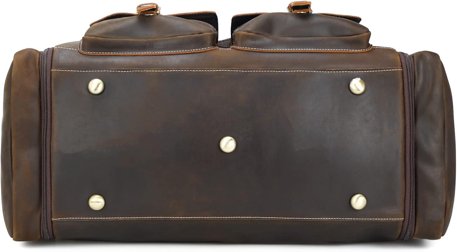 Polare 23″ Expandable to 29” Duffel Retro Thick Full Grain Cowhide Leather Gym Weekender Overnight Luggage Bag for Men