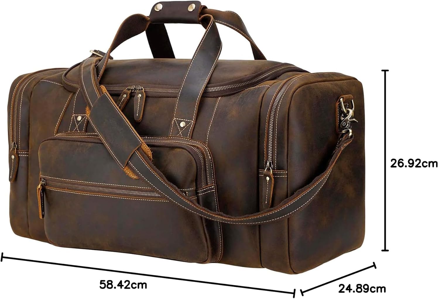 Polare 23″ Full Grain Cowhide Leather Gym Duffle Weekender Overnight Travel Duffel Bag for Men 42L