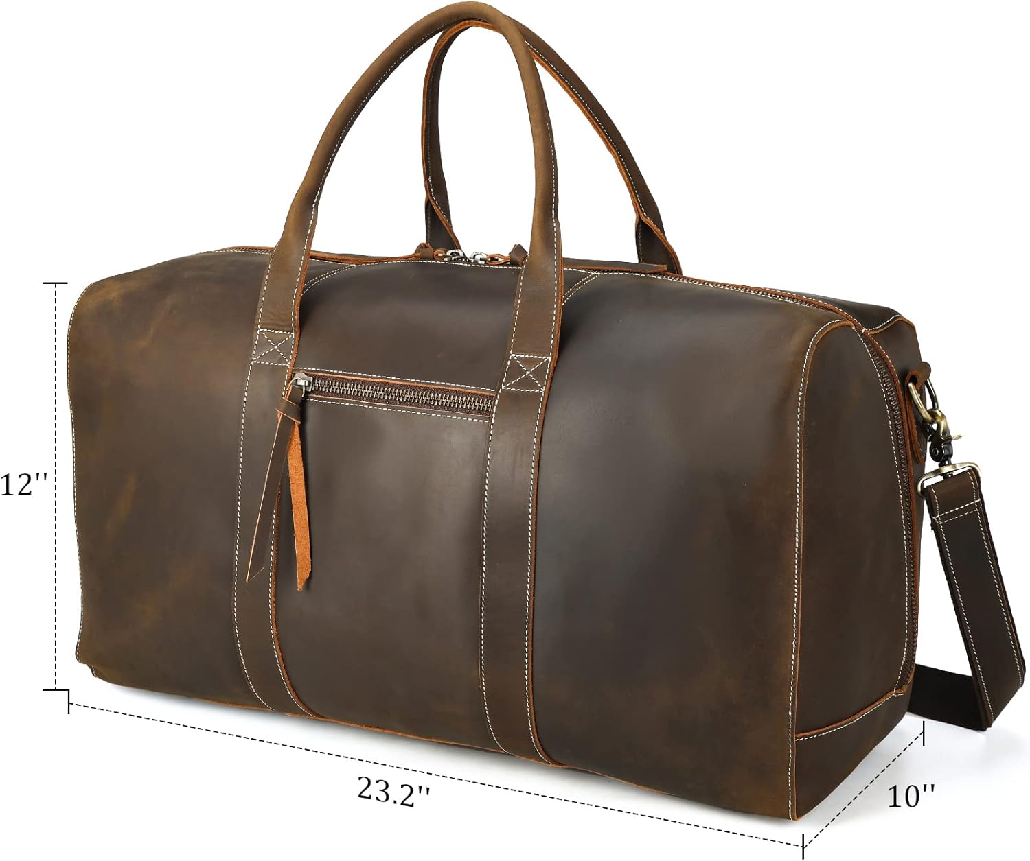 Polare Full Grain Leather Duffel Bag for Men Overnight Travel Duffle Weekender Bag 23.2” with Premium YKK Zippers