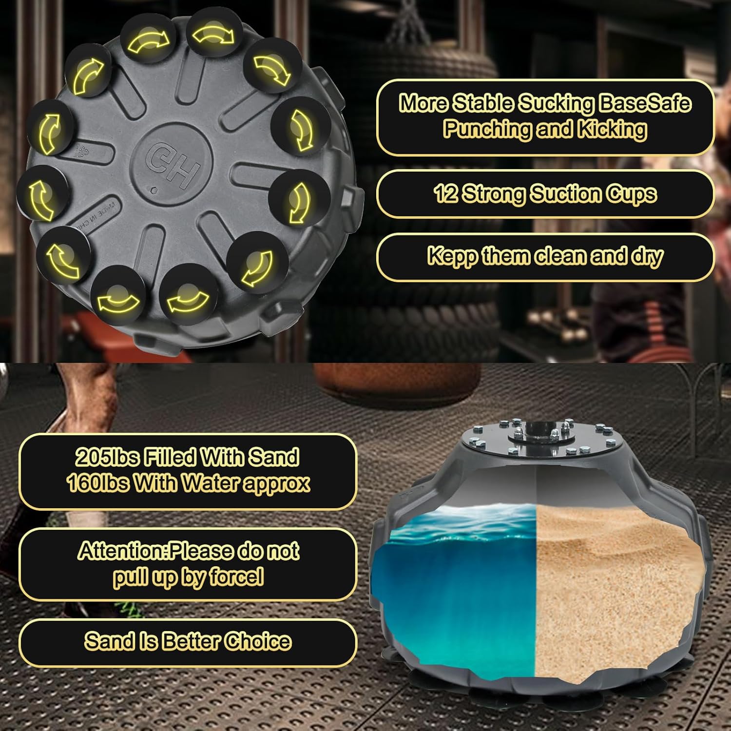 STRONG SUCTION BASE TECHNOLOGY Features a robust suction cup base that securely attaches to smooth surfaces, ensuring a steady platform during intense training sessions. Elevate your boxing experience with minimal vibrations.
