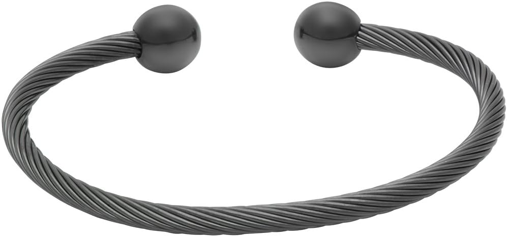 The Gun Metal Deluxe ionized bracelets offer both style and function. Strong deep grey colour for those who like a classic piece of jewellery that isn’t as obvious as black. IP gun metal coloured powder coating is baked onto the German surgical steel twisted into a flexible band and the iconic oval terminals for comfort and easy removal.