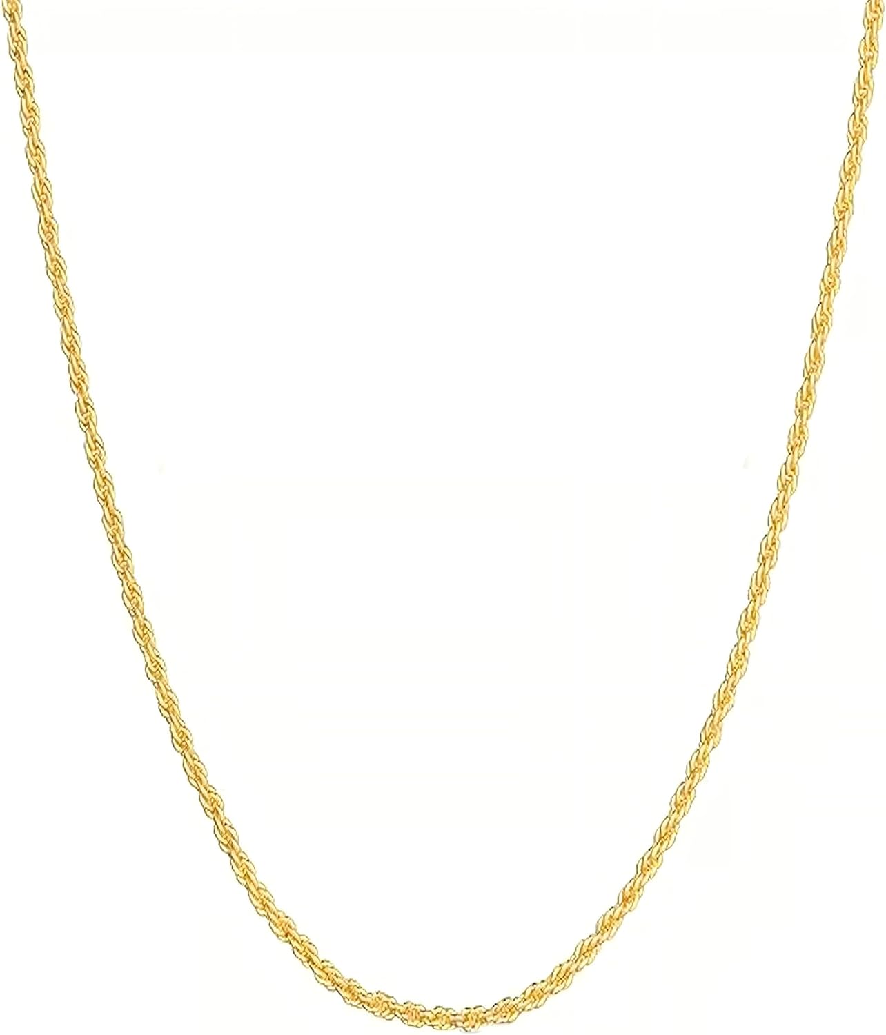 rapmoven 14k Real Yellow Gold Solid Rope Chain Necklace with Lobster Claw Clasp, Jewelry Gift for Women Men, 1.5-3.0mm, 16-30inch