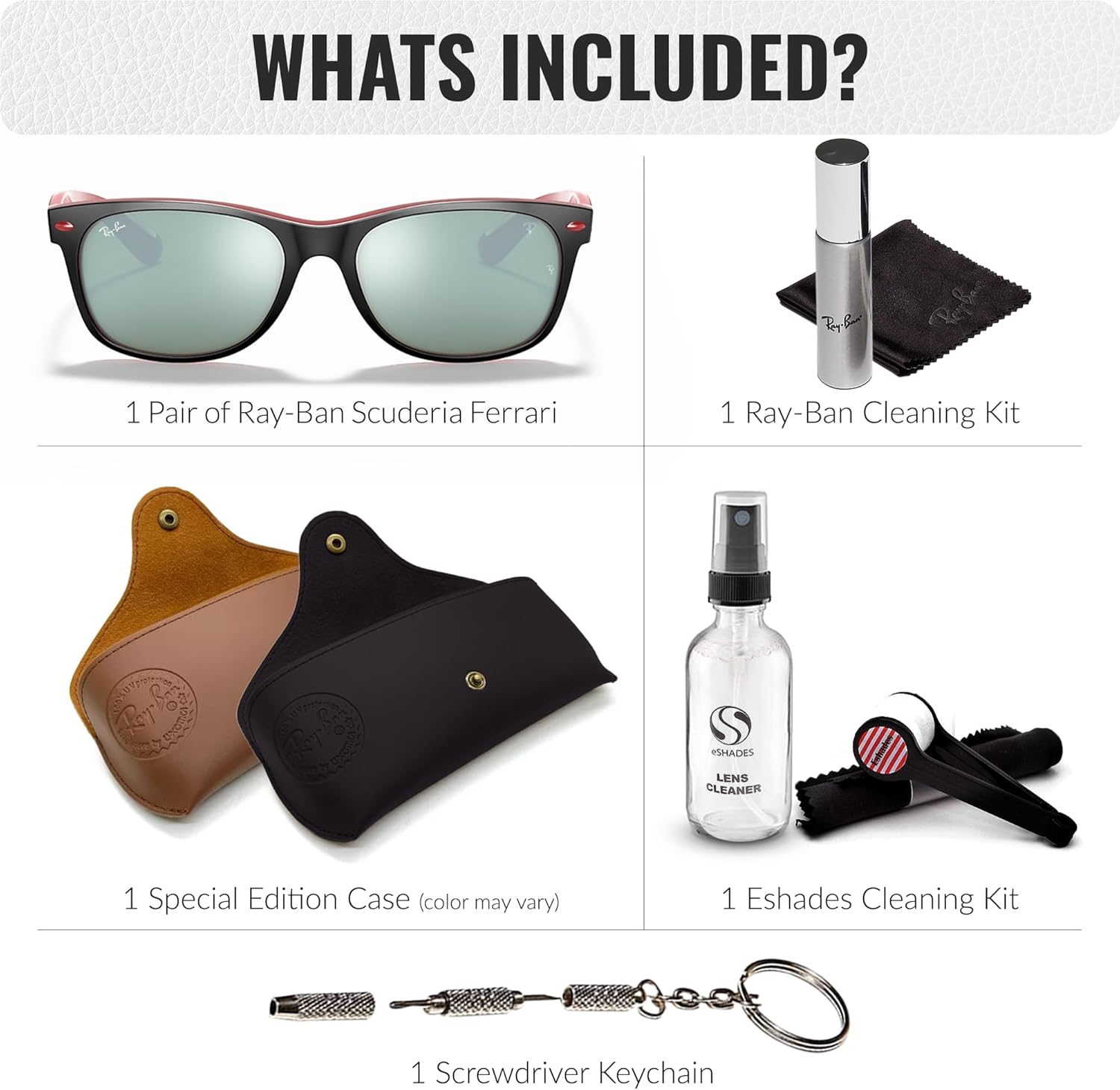 RAY-BAN RB2132M New Wayfarer Ferrari Collection Square Shape Sunglasses with RAY-BAN Eyewear Kit Bundle