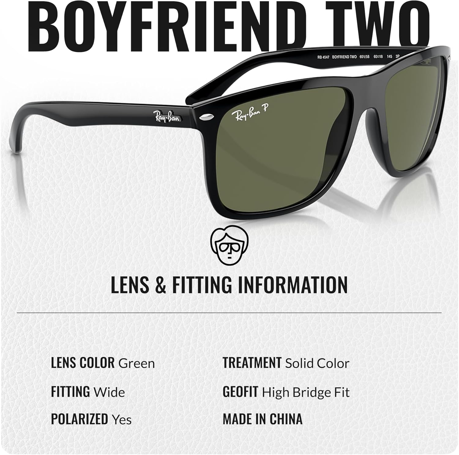Ray-Ban RB4547 Boyfriend Two Square Shape Polarized Sunglasses: Iconic Design with a Modern Twist Experience the perfect fusion of classic style and contemporary elegance with the Ray-Ban RB4547 Boyfriend Two Square Shape Polarized Sunglasses for men and women. Designed for those who demand both fashion and function, these sunglasses are more than just an accessory – they are a statement. Unmatched Craftsmanship Handcrafted, each pair of Ray-Ban Boyfriend Two Sunglasses is meticulously constructed from high-quality materials, ensuring durability and comfort. The bold square shape silhouette is reimagined with a modern twist, making it the ideal choice for trendsetters. Adjustable nose pads provide a customized fit for added comfort. Superior Lens Technology Featuring advanced polarized lenses, Ray-Ban Boyfriend Two Sunglasses offer unparalleled protection against harmful UV rays while reducing glare and enhancing visual clarity. Whether you’re driving, lounging on the beach, or exploring the city, these lenses ensure your eyes stay protected and your vision sharp. Iconic Style With a rich heritage dating back to 1937, Ray-Ban is synonymous with authenticity and effortless cool. The RB4547 Boyfriend Two Square Shape Polarized Sunglasses embody this legacy, offering a versatile design that complements any look. Choose from a variety of frame and lens color combinations to find the perfect pair that reflects your personal style. Ideal for Ray-Ban mens and sunglasses womens designer. Why Choose Ray-Ban? Ray-Ban has been the eyewear of choice for visionaries, rebels, and icons for decades. From Hollywood stars to everyday heroes, those who wear Ray-Ban appreciate the brand’s unwavering commitment to quality, innovation, and style. When you choose Ray-Ban, you’re not just buying a pair of sunglasses – you’re investing in a piece of fashion history. Experience the Difference