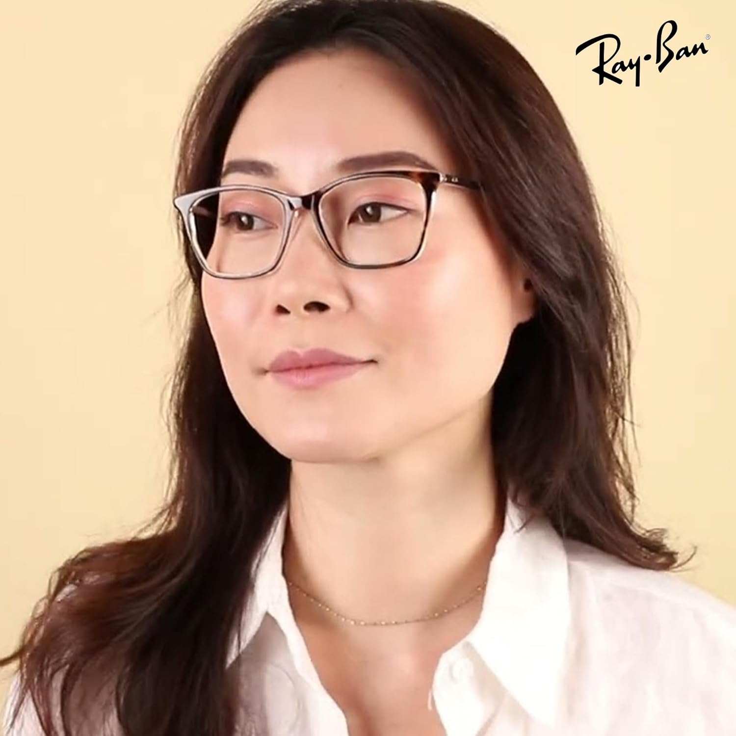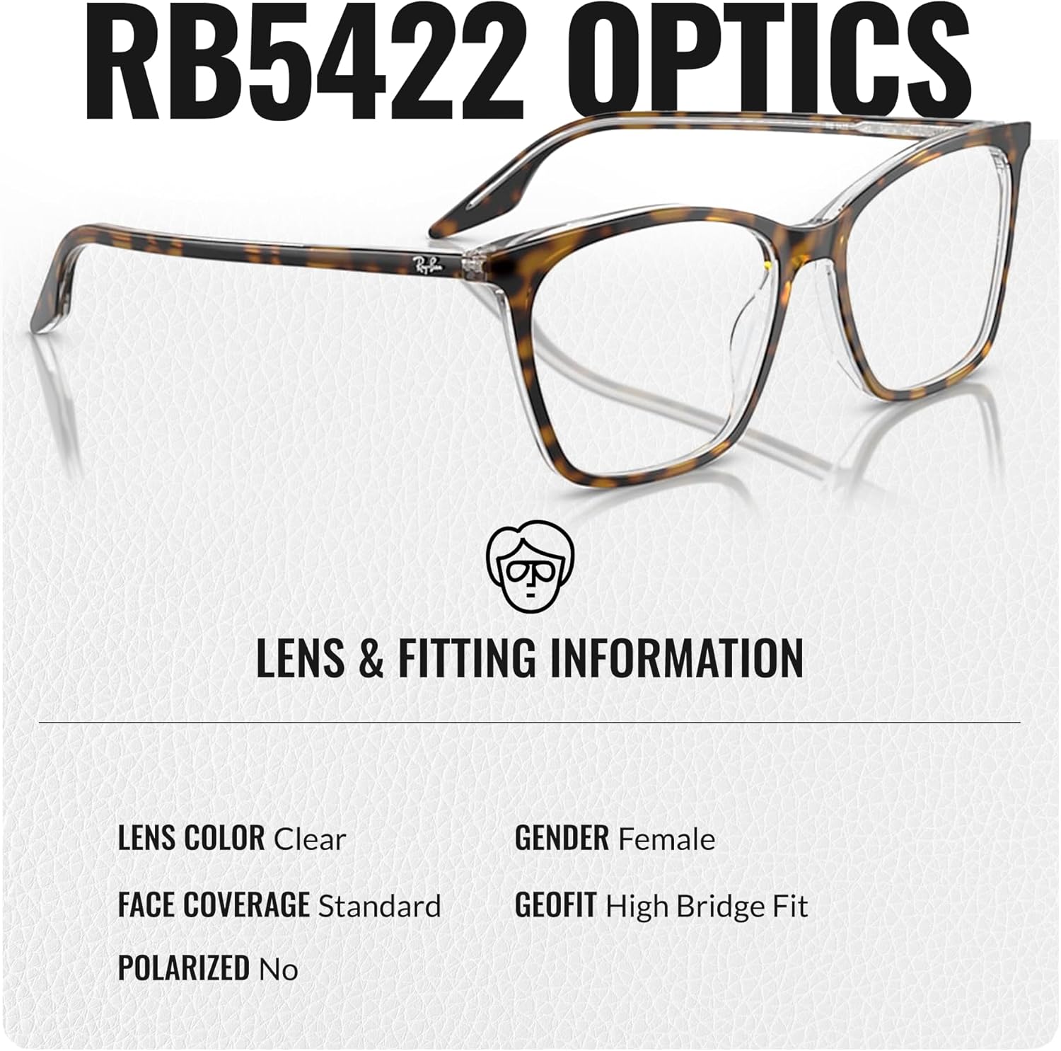 Ray-Ban RB5422 Cat-Eye Shape Glasses With Eyewear Kit Bundle – Eyeglasses with High Bridge Fit – Women’s Designer Glasses Frame with Clear Lenses, Havana on Transparent Frame | Clear Lens