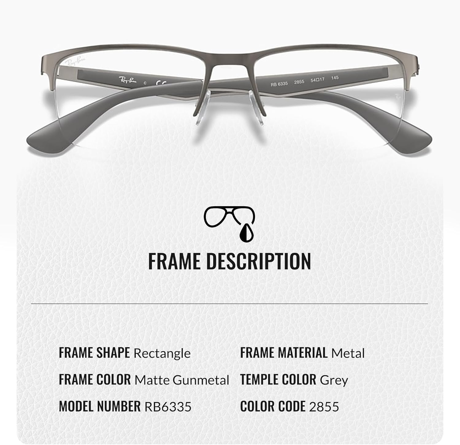 Ray-Ban RB6335 Rectangle Shape Metal Glasses With Eyewear Kit Bundle – Eyeglasses with Adjustable Nose Pads – Women’s Designer Glasses Frame with Clear Lenses, Gunmetal Frame | Clear Lens