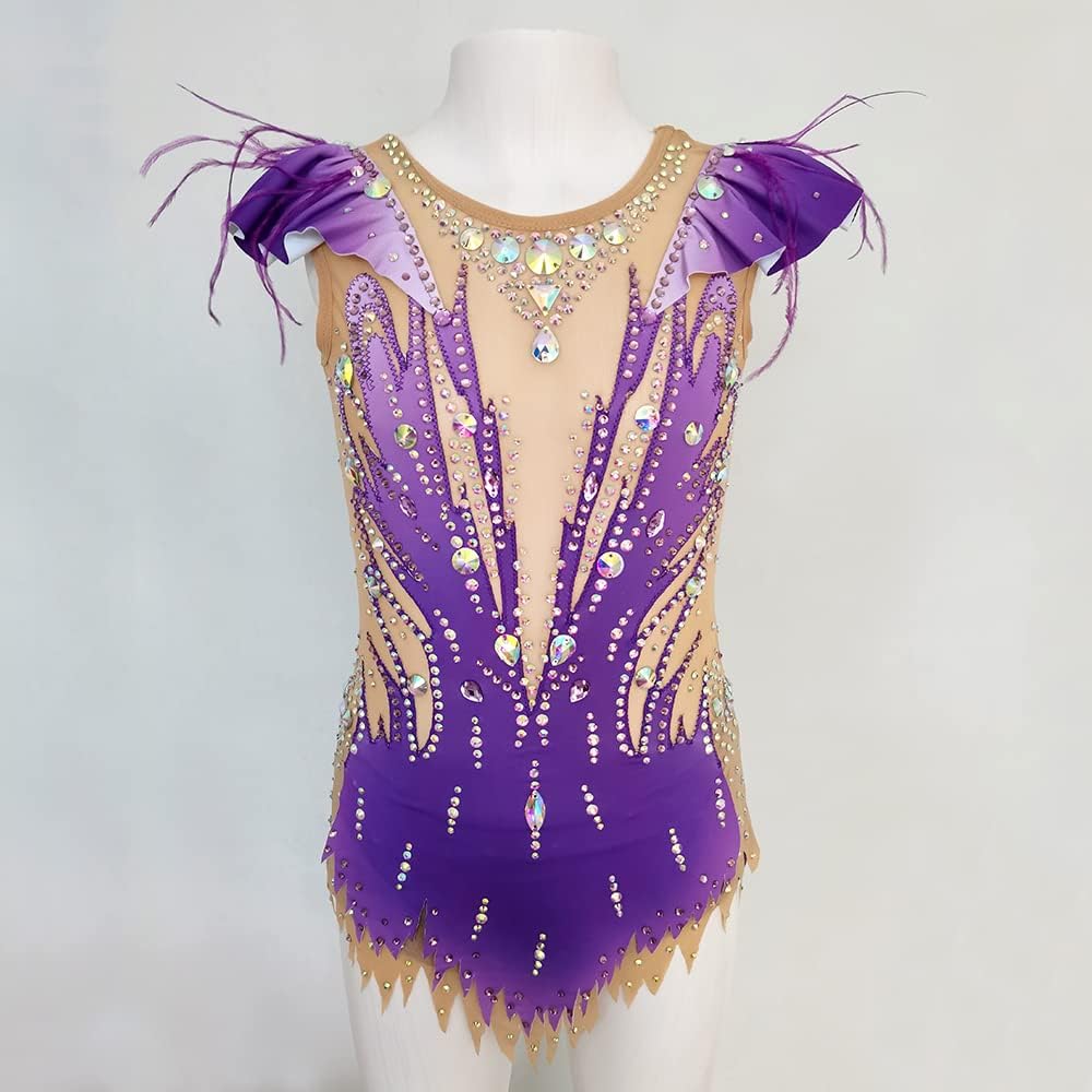 Rhythmic Gymnastics Leotard Purple Belt Drill Girls Sleeveless Competition Performance, Purple, X-Large