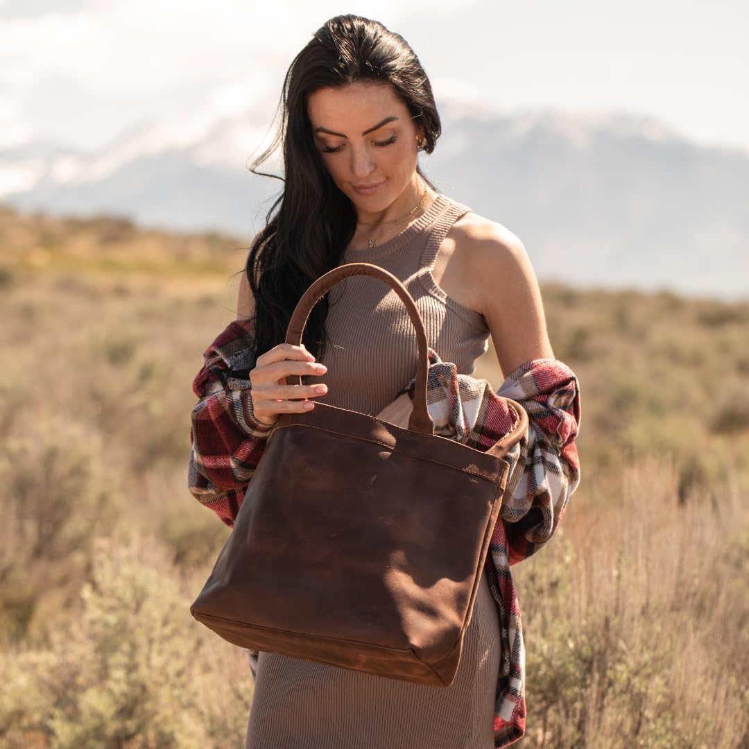 Elevate your style with the Rosewood Leather Tote Bag for Women by Lumberjack Plaid. Crafted from premium full-grain leather, this elegant tote combines functionality and fashion. Whether you’re heading to the office, a weekend getaway, or a casual day out, this tote is designed to be your perfect companion. The high-quality zipper ensures your belongings stay secure, while the multiple interior pockets offer excellent organization for your essentials. Available in beautiful Cognac and Brown Sugar colors, the Rosewood Tote Bag exudes sophistication and durability, making it an ideal choice for modern women.