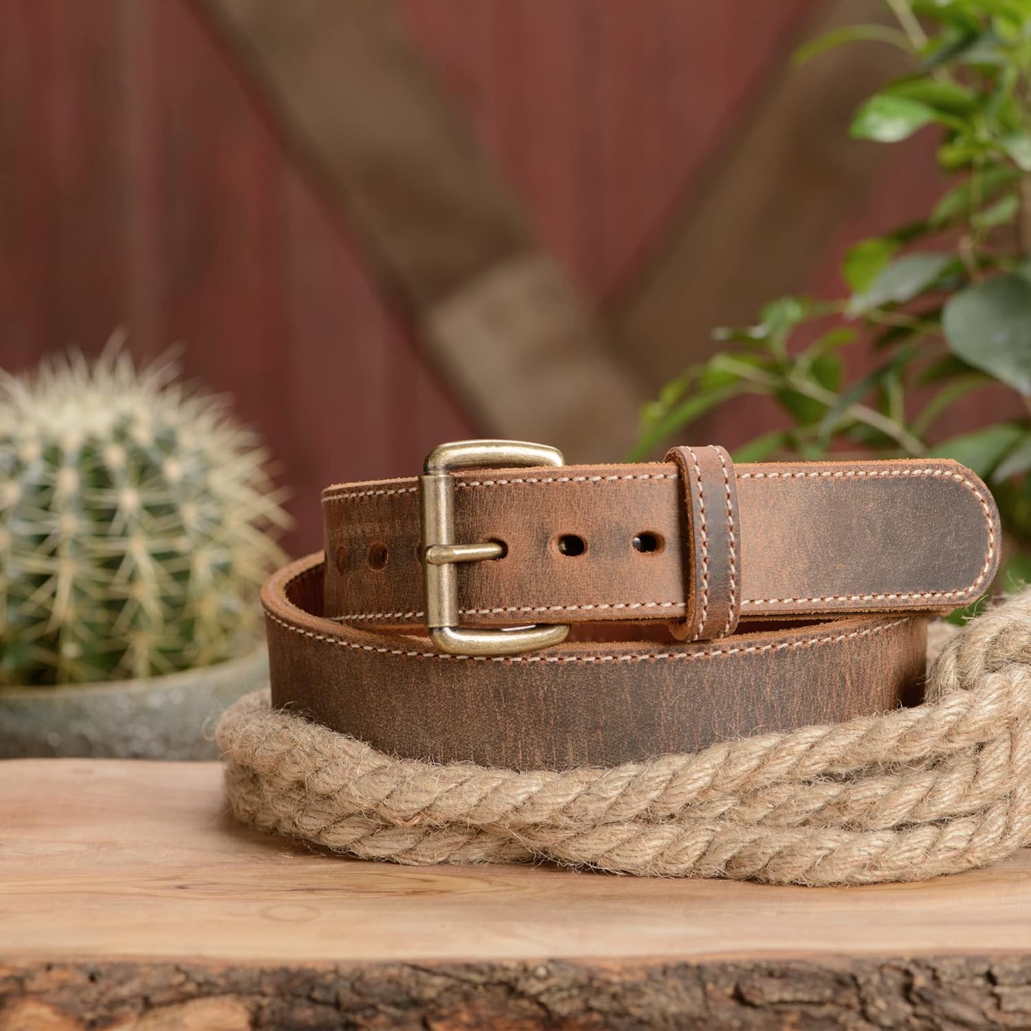Rustic Brown Stitched Water Buffalo Steel Core Gun Belt – Made in USA
