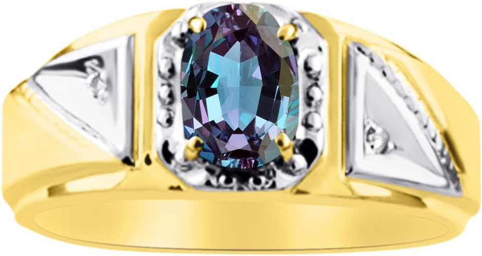 RYLOS Mens Rings 14K White Gold – Diamond & Simulated Alexandrite Ring 7X5MM Color Stone Gemstone Rings For Men Mens Jewelry Gold Rings