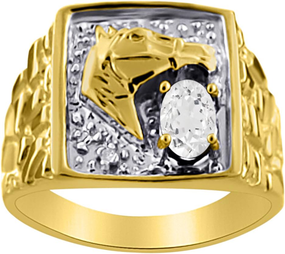 Be the first to review “RYLOS Mens Rings 14K White Gold – Diamond & White Topaz Ring Lucky Lucky Horse Head 6X4MM Color Stone Gemstone Rings For Men Mens Jewelry Gold Rings”