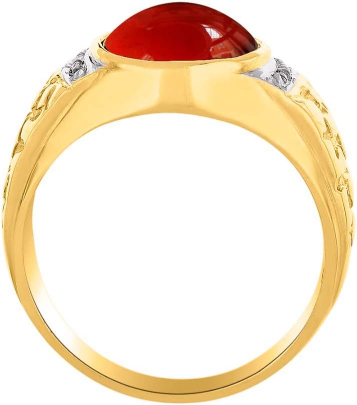 RYLOS Mens Rings Yellow Gold Plated Silver Nugget Ring with Oval Shape Cabochon Gemstone & Genuine Sparkling Diamonds Rings For Men Men’s Rings Silver Rings Sizes 8,9,10,11,12,13 Mens Jewelry