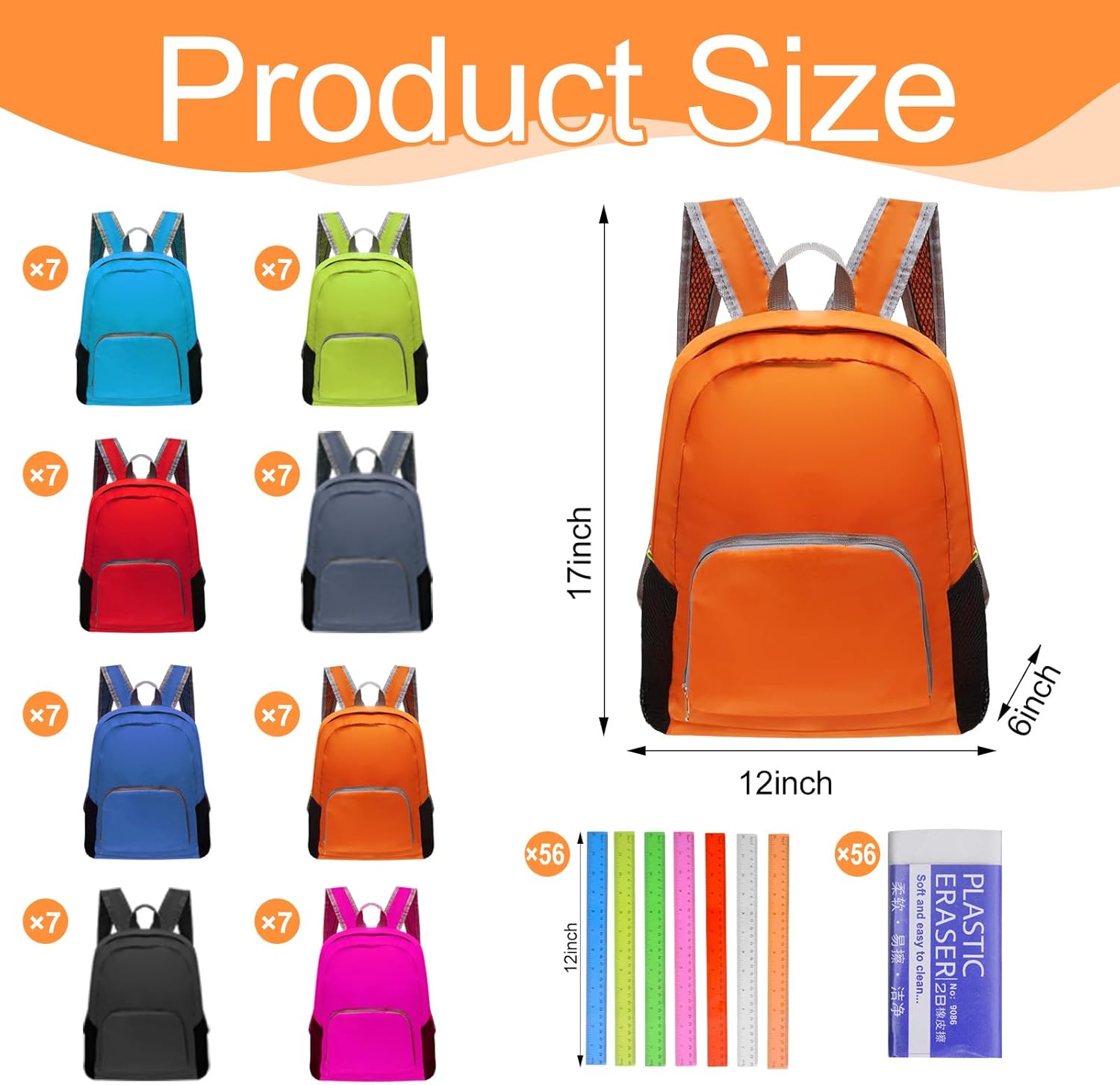 Sufficient Backpack Set: This package includes 56 backpacks in 8 vibrant colors (7 per color), along with 56 rulers in 8 colors and 56 erasers. This set provides ample options to meet diverse preferences and needs for both kids and adults.