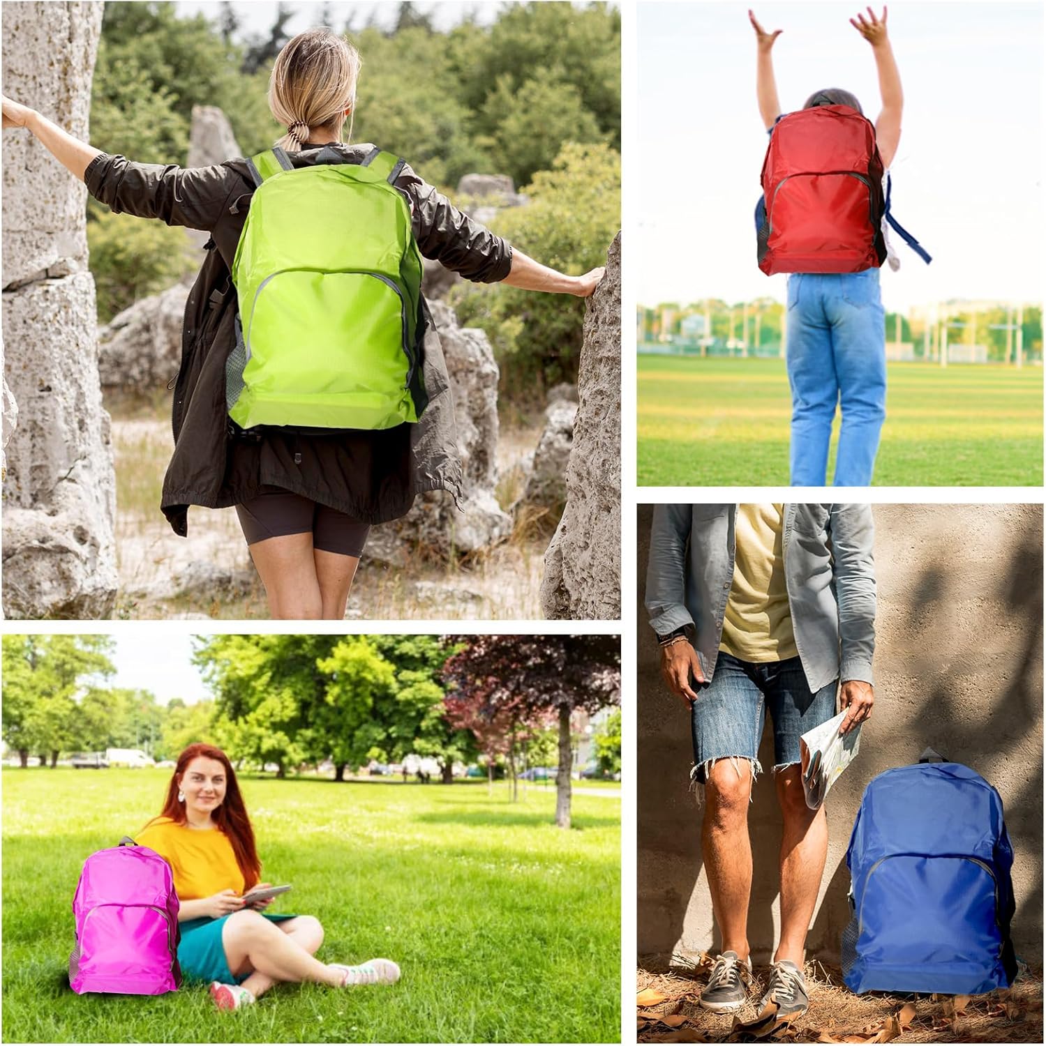 SENONAPO 56 Pack Backpacks in Bulk 17 Inches Foldable Lightweight Bookbags for Boys Girls Basic Back with 56 Rulers 56 Erasers for Student Outdoor Travel School Supplies(8 Colors), Multicolor, Large,