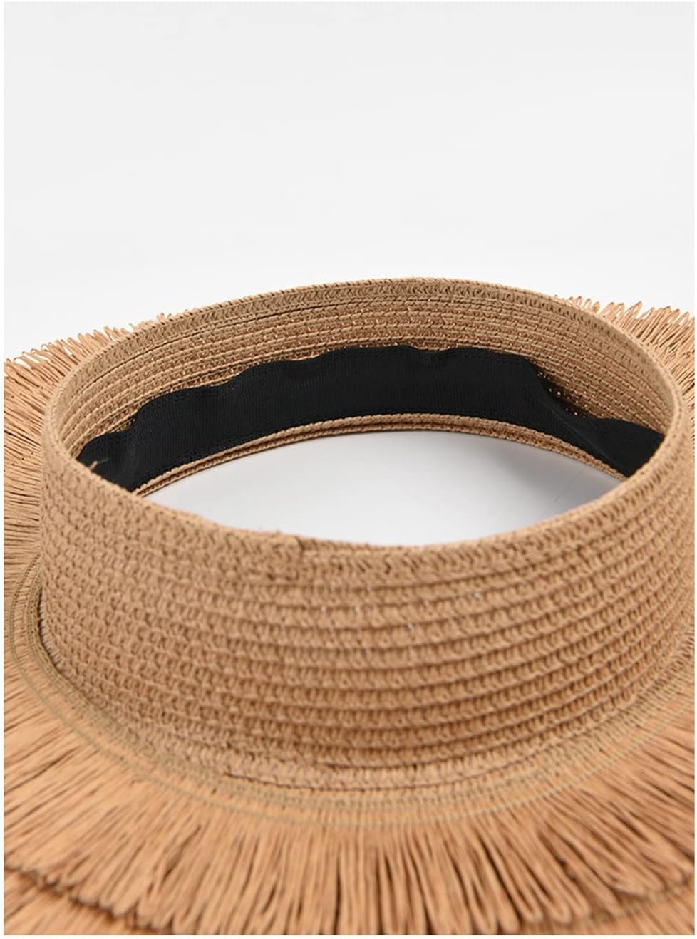 SIDUFHAOPKLL Visor Hats for Women Ladies Big Brim Beach Hat Sun Hats UV Protection Raffia Visor Hat(white-Starlight10)