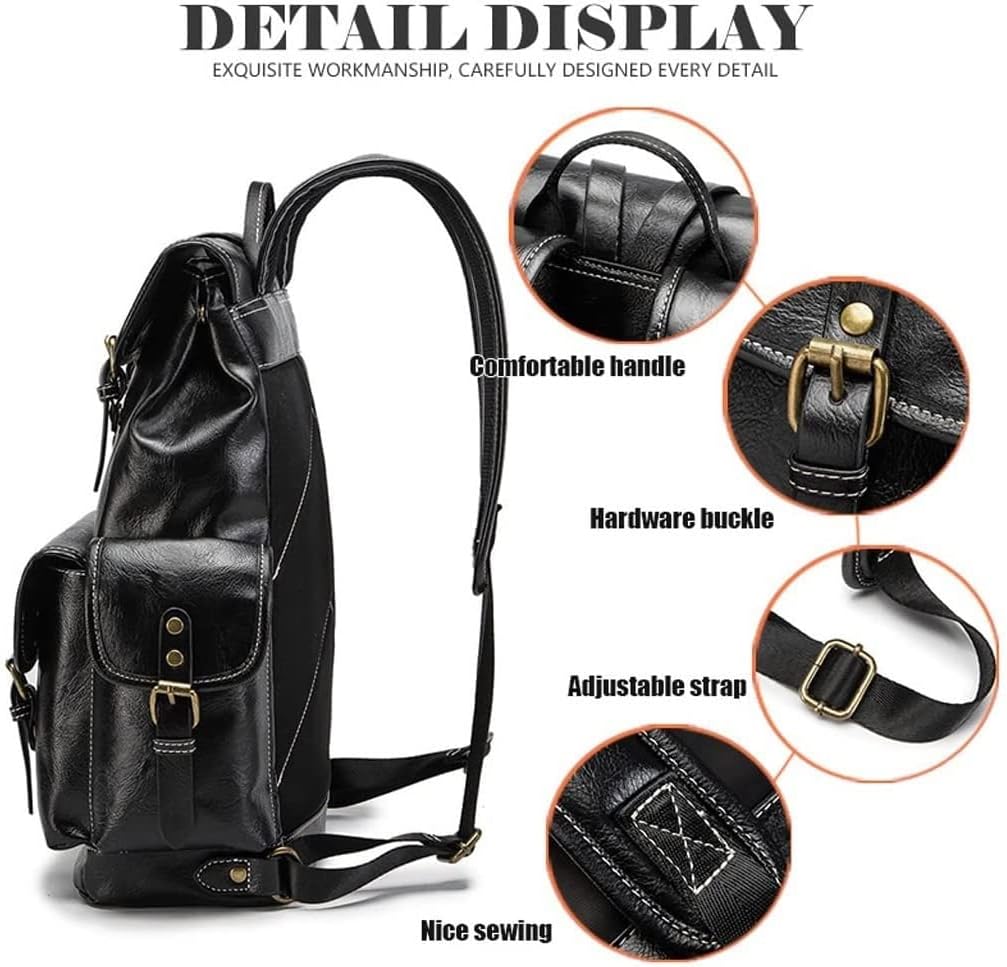 *Quality: Men’s retro backpack is made of PU leather, which is waterproof and durable, has clear texture, soft and delicate touch, and is not easy to break.