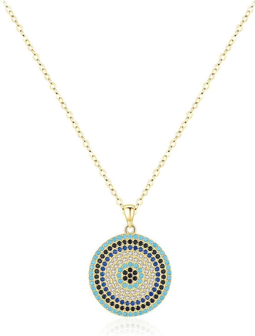 SUTTONRAL 18K Gold Moissanite Devil Eye Pendant Necklace for Women, Delicate Blue Moissanite Jewelry Gift, Mother’s Day Gift, Gold, Moissanite