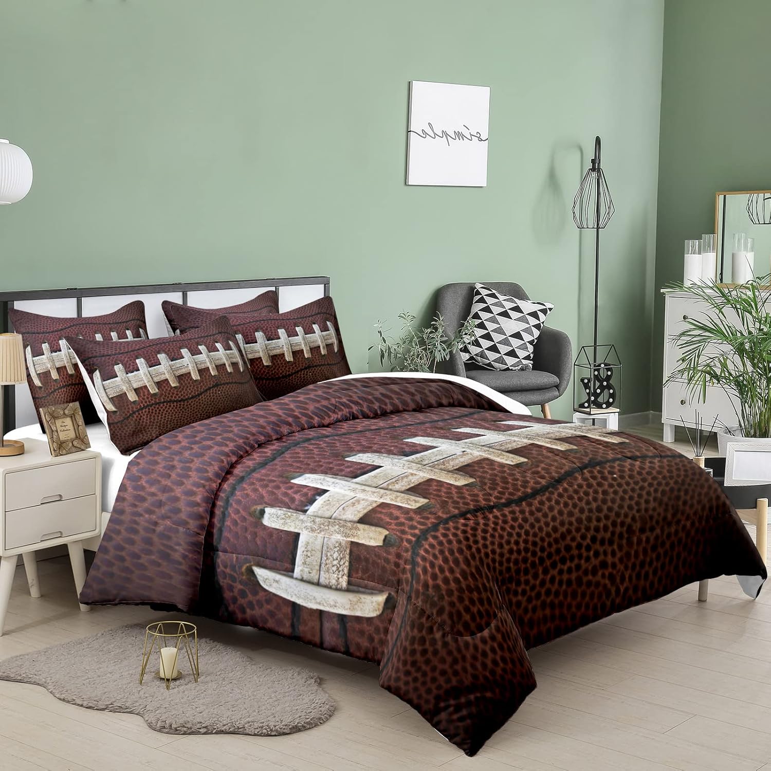 Tailor Shop Brown Football Comforter Set King Size ,Rugby Sports Theme Bedding Set for Boys Kids Teens,with 1 Comforter 2 Pillow Shams