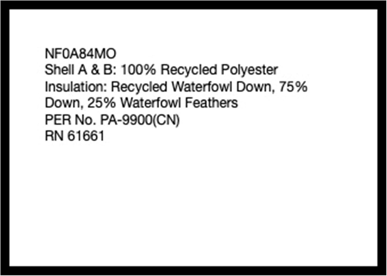 Item model number                                                                        :                                                                        NF0A84MO