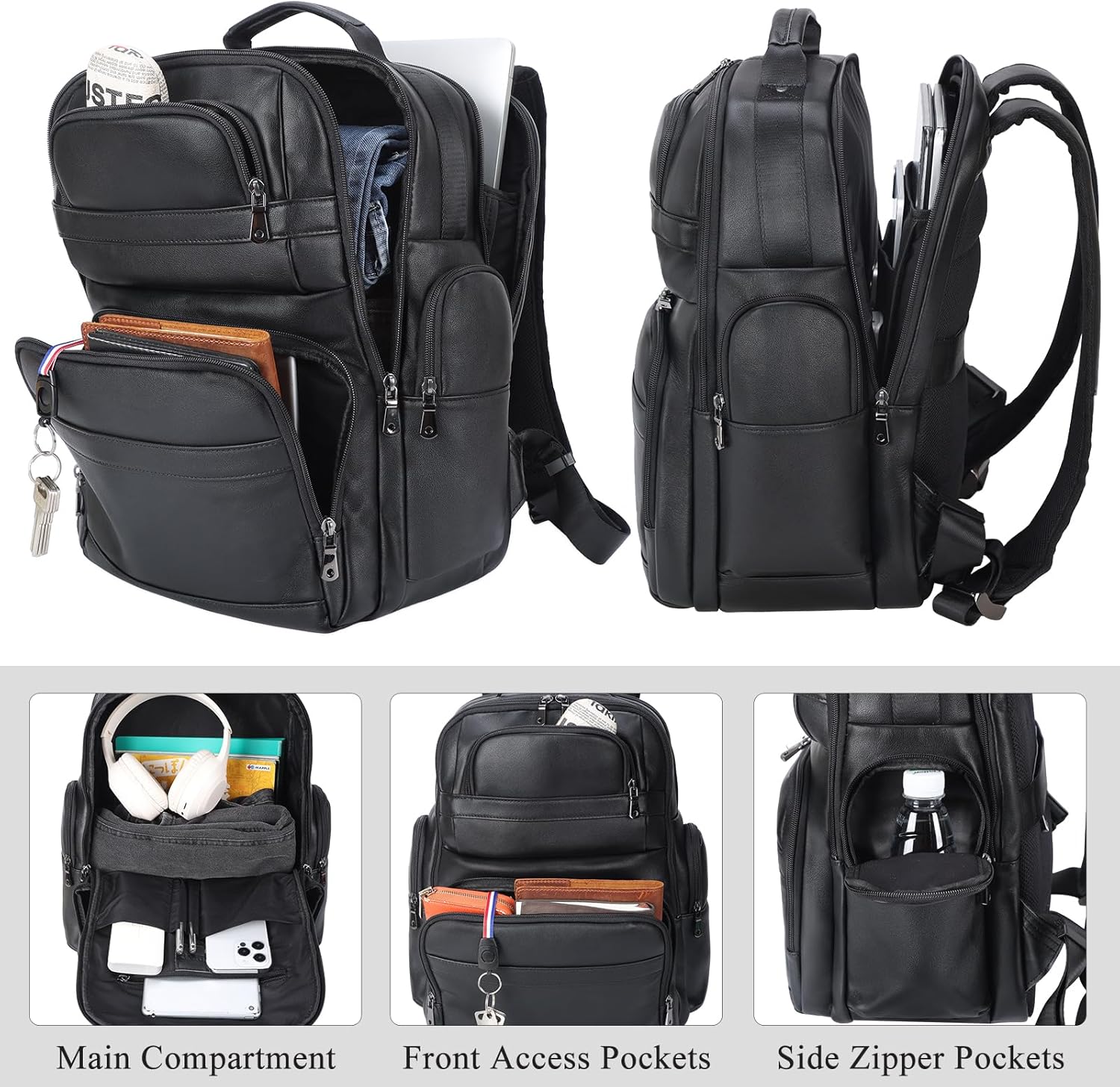 【Premium Quality】The black leather backpack is made of genuine cowhide leather, high qaulity ykk plastic zipper and durable hardware. The ykk zipper can bear 1000 times pull strength testing to ensure its quality and durability. It’s actually a little heavy because it’s made of thick leather and quality craftsmanship, so it will stand the test of time and will last for years.