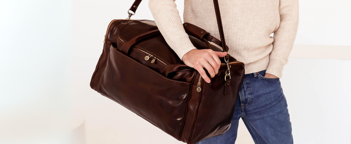 The duffel bag comes in a 100% cotton dust bag that protects it from the sun, dust, scratches, and stains while also allowing the leather to breathe.
