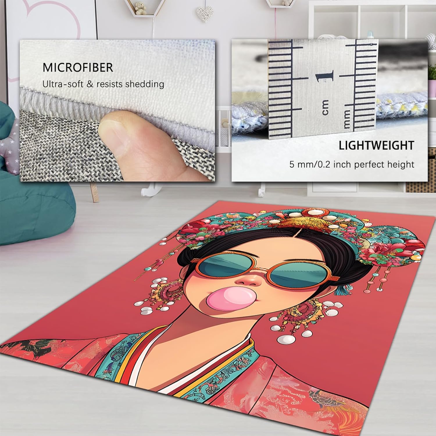 Tradition Chinese Style Area Rug Ancient Girl Large Carpet for Living Room Bedroom Fashion Sunglasses Girl Rug Retro Floor Mat 5’x9′