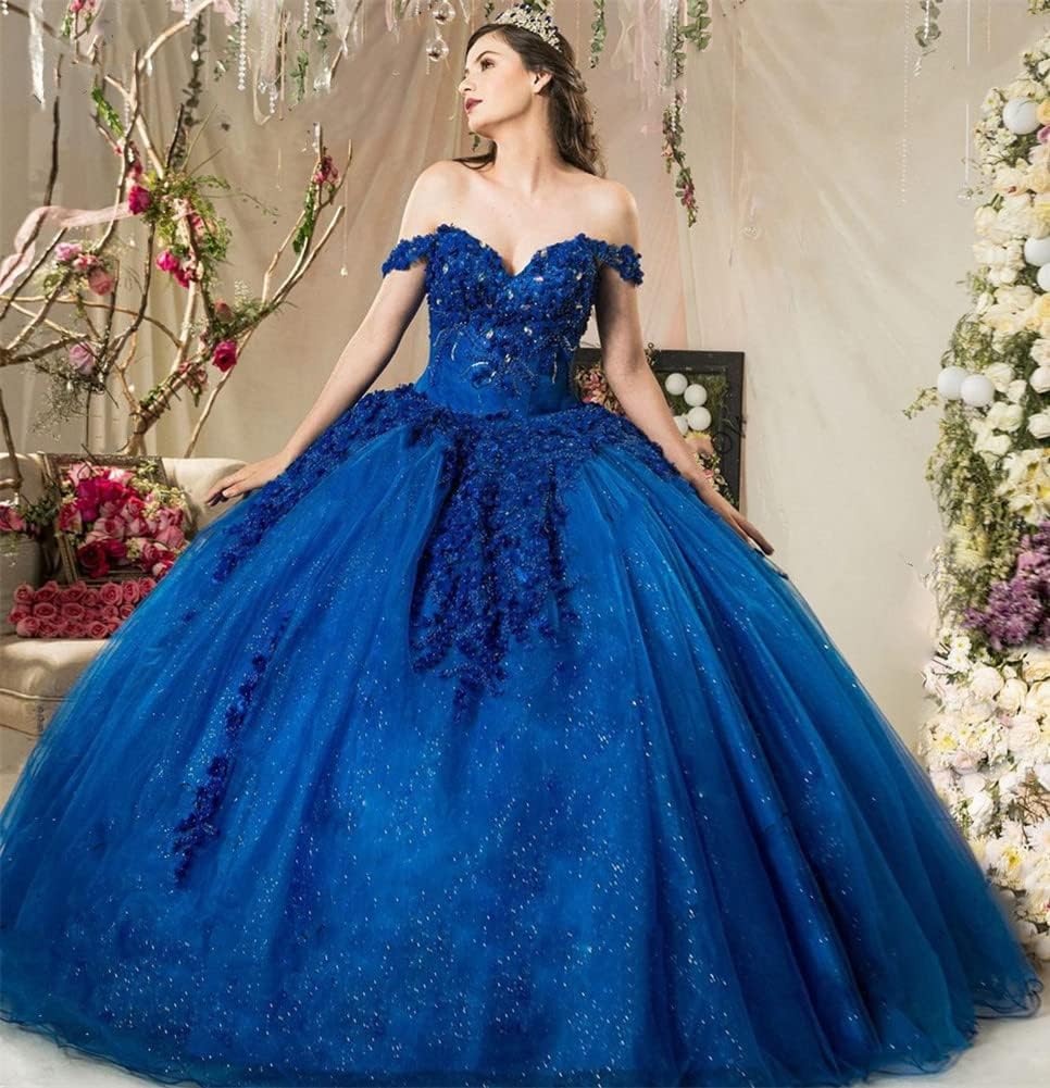 TSxuelian Women’s Sweet 16 Off Shoulder Flower Applique Quinceanera Dress Sweetheart Neck Ball Gown Dress