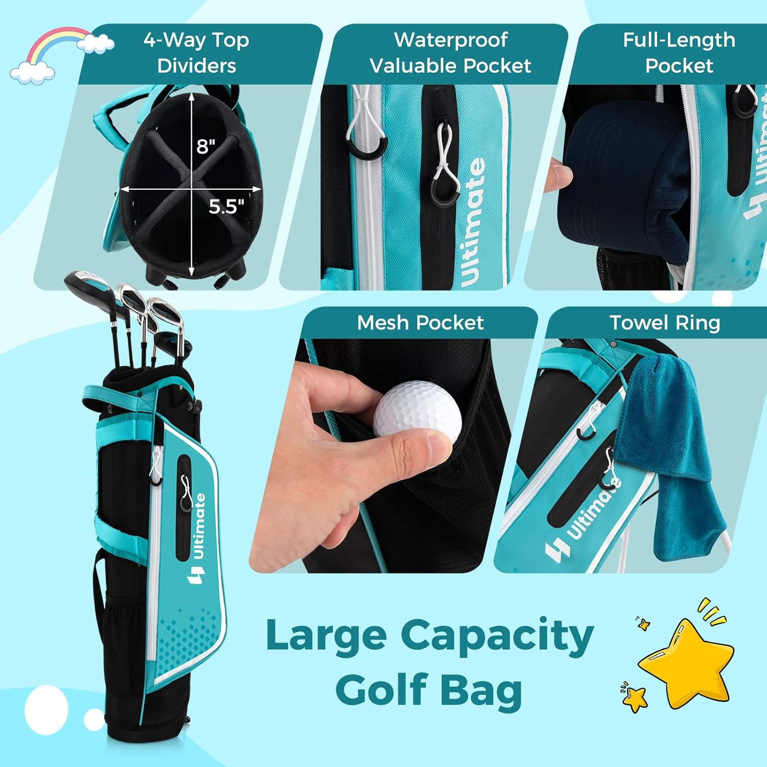 ULTIMATE Junior Complete Golf Club Set, Right Handed Kids Complete Golf Set with 4/6 Golf Clubs & Versatile Stand Bag, Kids Golf Stand Bag Set with Rain Hood for Ages 5-7, 8-10, 11-13 Boys Girls