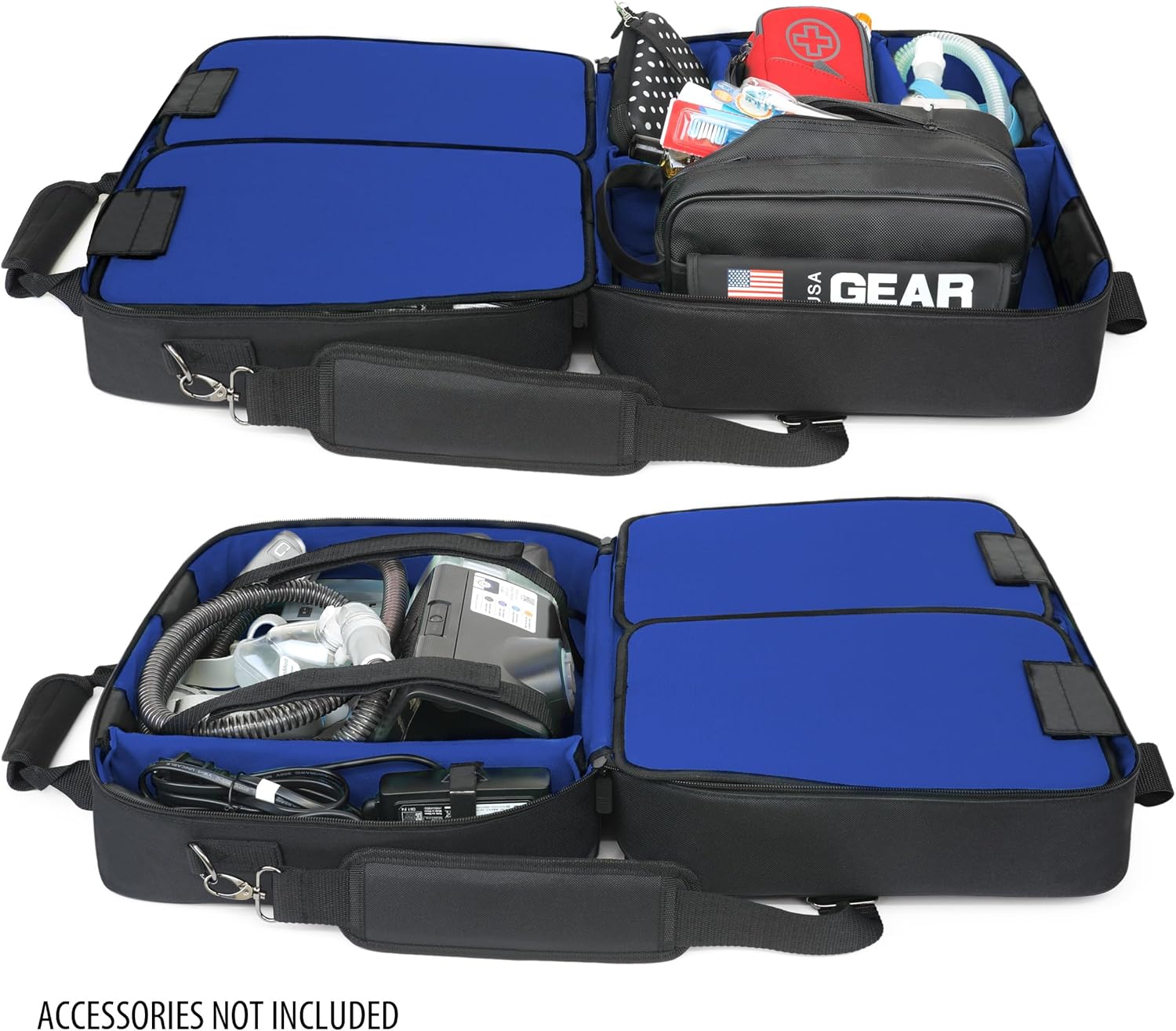 USA GEAR Large CPAP Travel Bag – Customizable Interior for CPAP Machine Hose, Mask & CPAP Accessories Compatible with Resmed AirSense 10/11, Philips Respironics Dreamstation & More – Blue