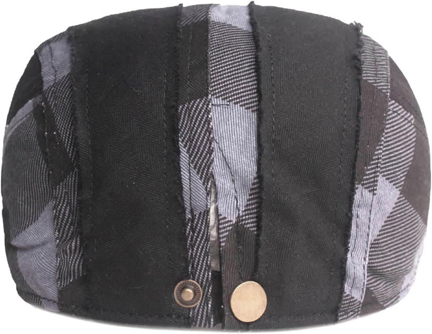 UWSKLAOJDF Classic Washed Cotton Beret Cap Men Plaid Newsboy Caps Baker Boy Hat Spring Adjustable Driver Hats(C)