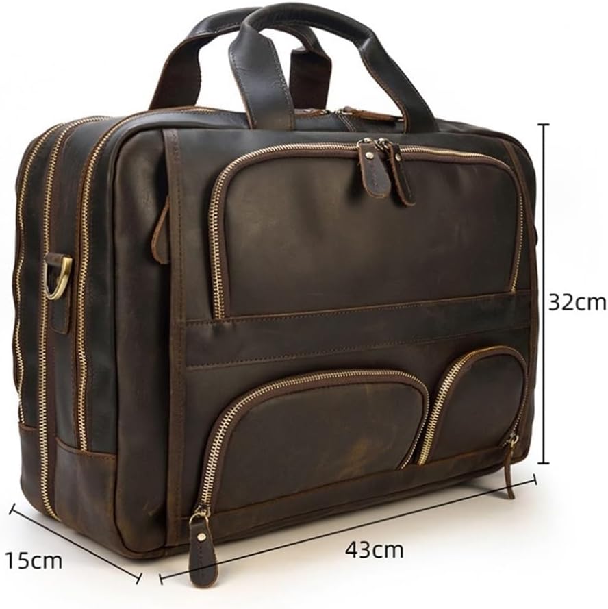 Vintage Distressed Leather Briefcase Men 17 Inch Waterproof Business Travel Vacation Laptop Bag with Shoulder Strap