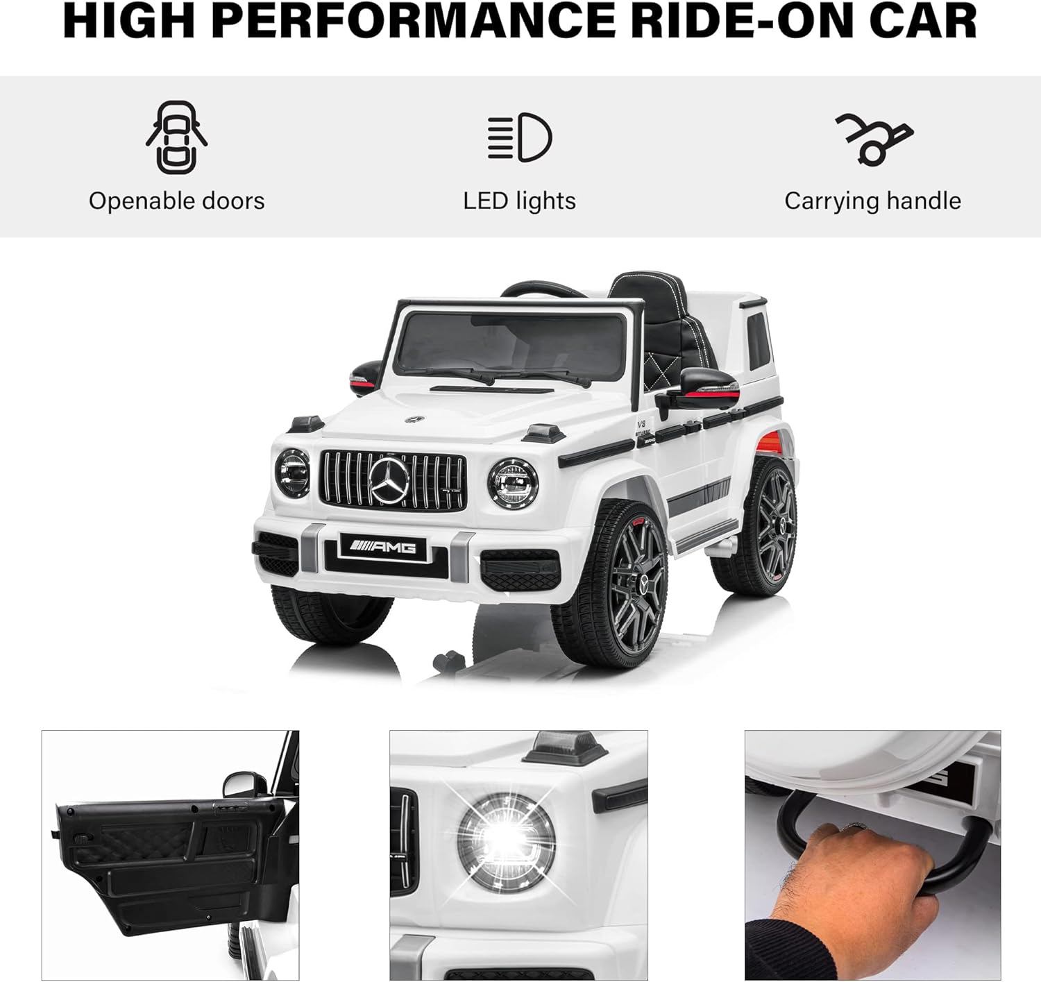 VOLTZ TOYS Licensed AMG G63, 12V Electric Kids’ Ride On Car with Parental Remote Control, LED Lights, Leather Seat and MP3 (White)