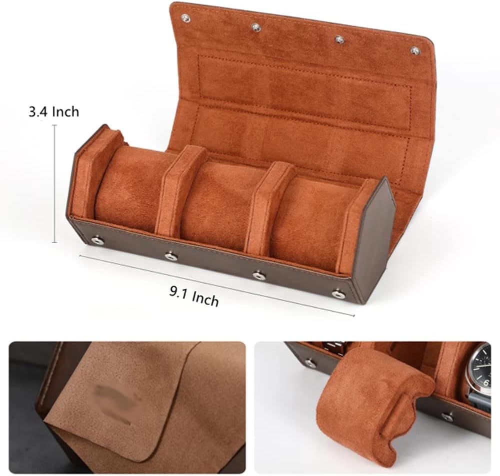 Watch Case for Men 3 -Slot Watch Roll Travel Case Storage Organizer & Display Handmade Accessory Portable Box (Color : A) (B)